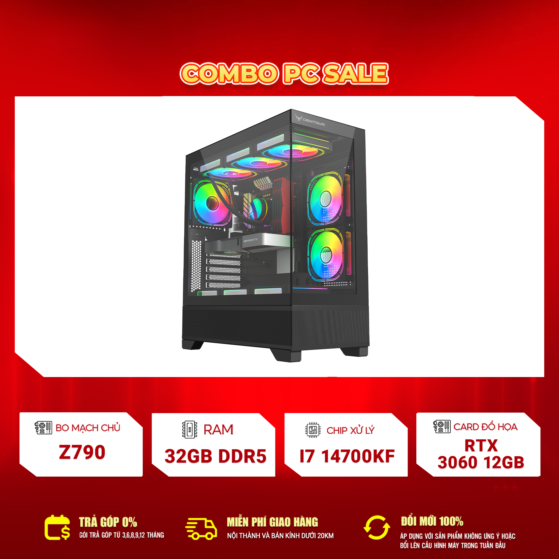 - Vỏ case: Centaur C11 (mới), kèm 3 fan RGB CT03/CT09/CT8800 + hub điều khiển