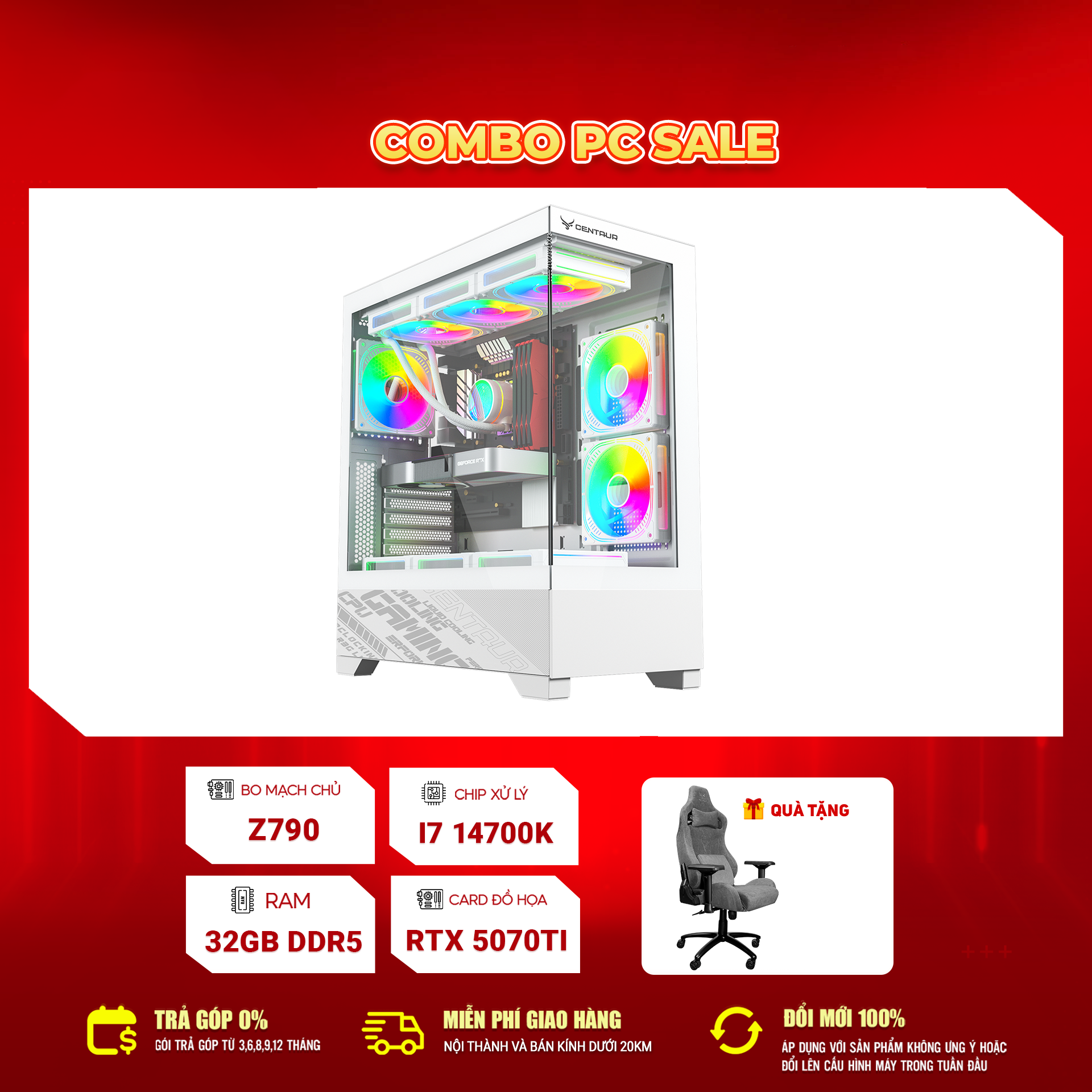 - Tặng Ghế Gaming Centaur CRA/ Ghế Công Thái Học CT OC02 trị giá 3.000.000vnđ