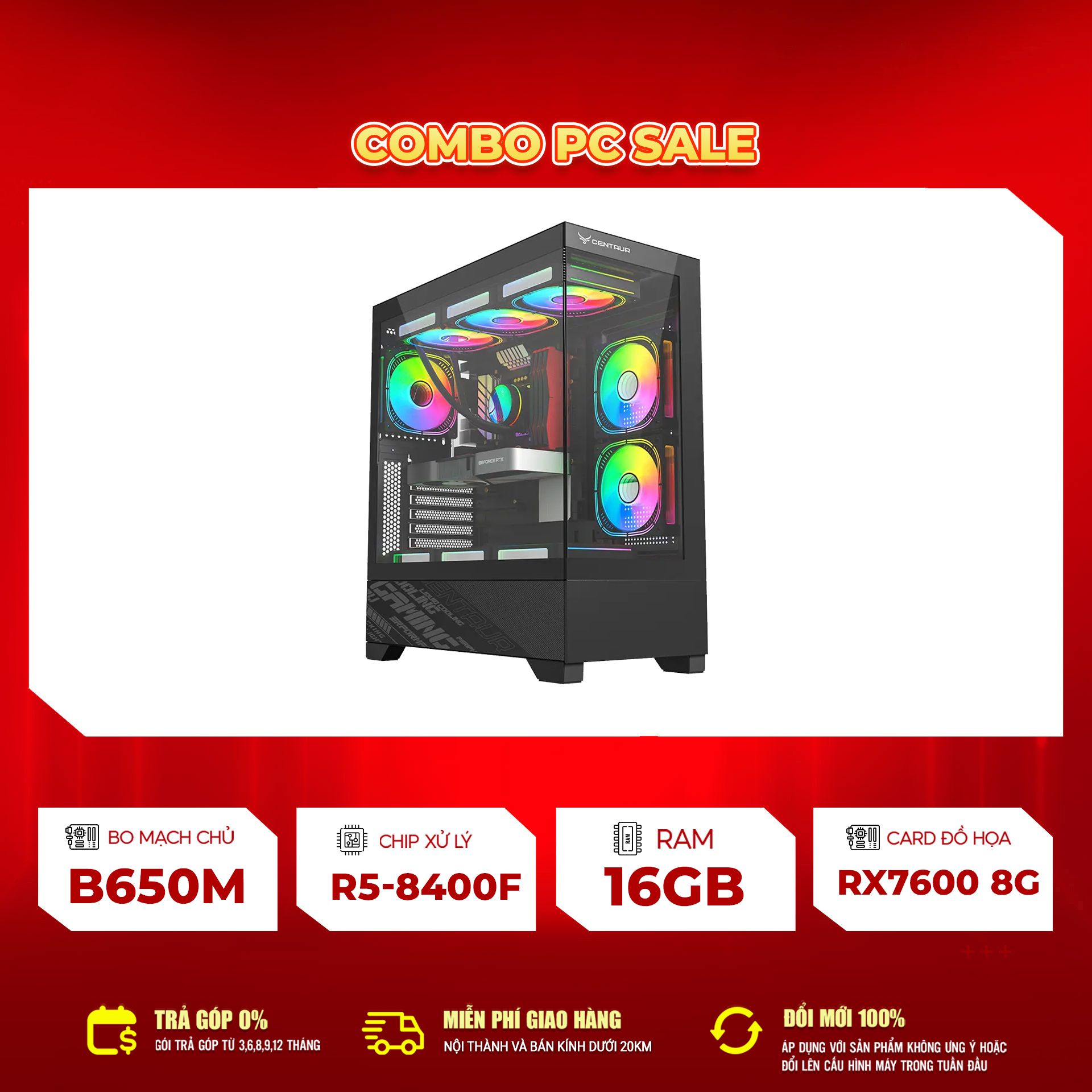 - Vỏ case: Centaur C11 (mới), kèm 3 fan RGB CT03/CT09/CT8800 + hub điều khiển
