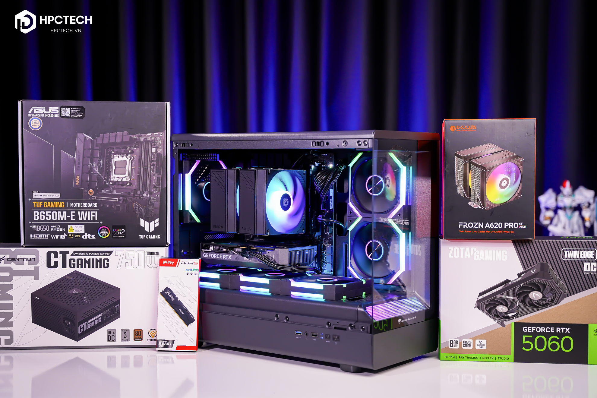 - Vỏ case: Centaur C11 hoặc C12 (mới), kèm 3 fan RGB CT03/CT09/CT8800 + hub điều khiển